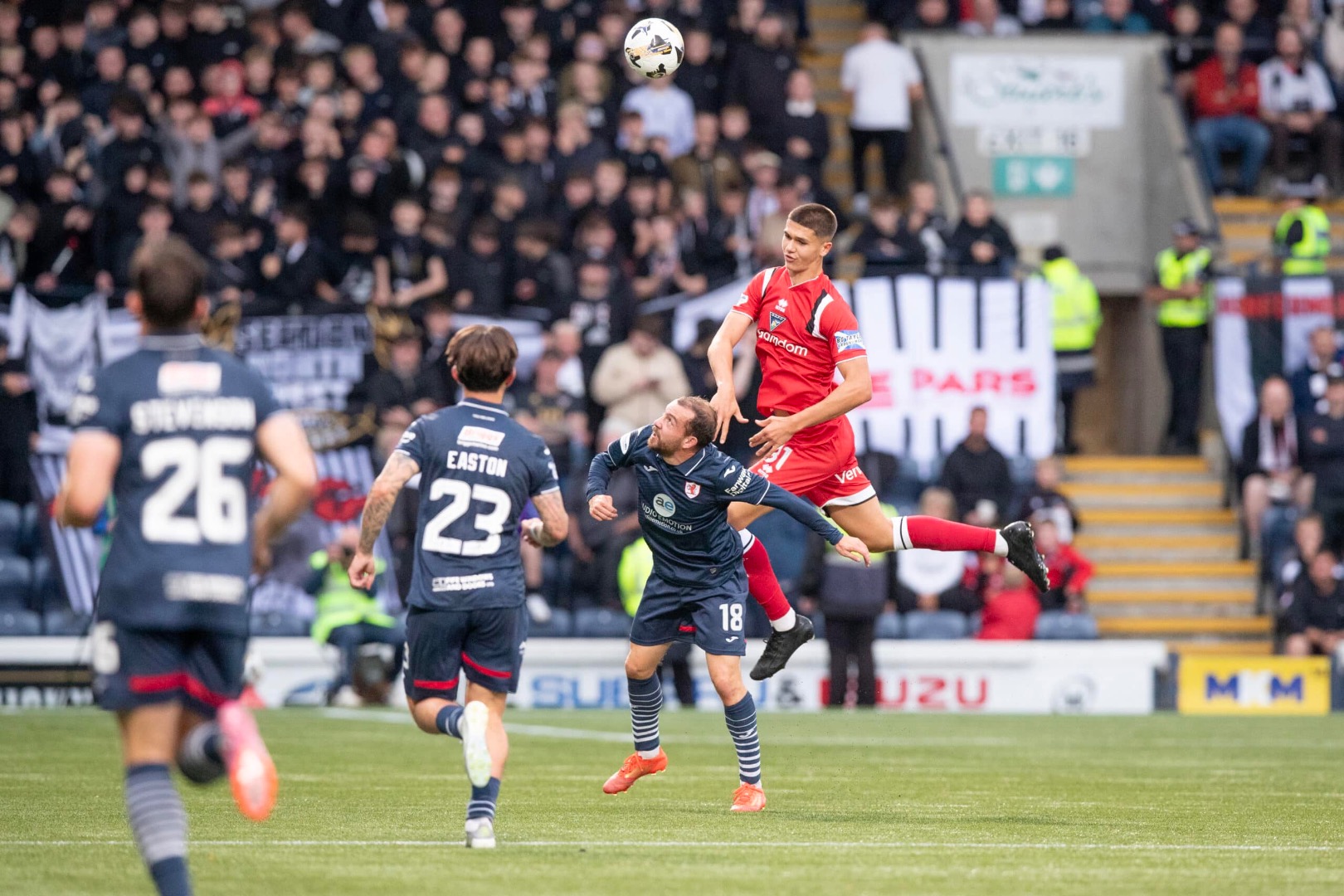 Easton forced a ninth minute corner conceded as Kyle Benedictus slid in and it was the Pars skipper who headed away the cross from the setplay. Andrew Tod tried an audacious shot from just snide the Rovers half on the right but that dropped wide of target. Pars keeper Mason Munn clawed away a Josh Mullen free kick from the left touchline and his counterpart Josh Rae reacted quickly to thwart Connor Young`s chance to latch on to a loose Stevenson back pass.