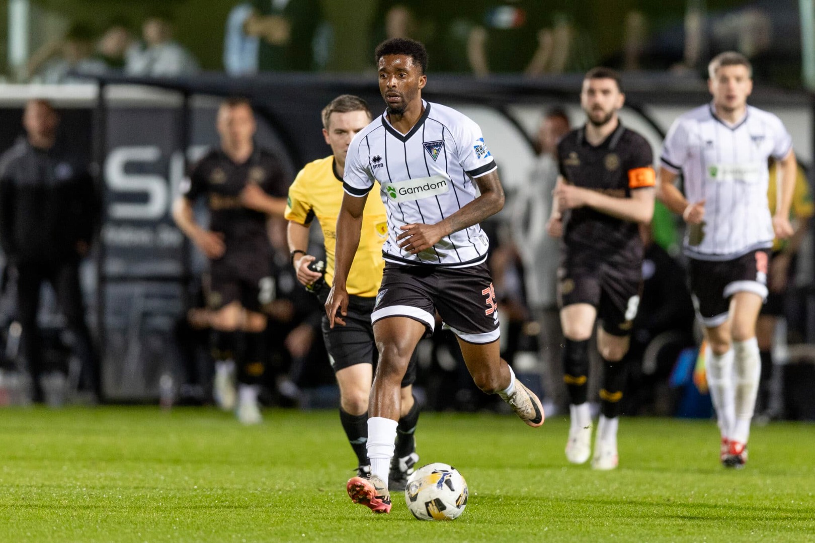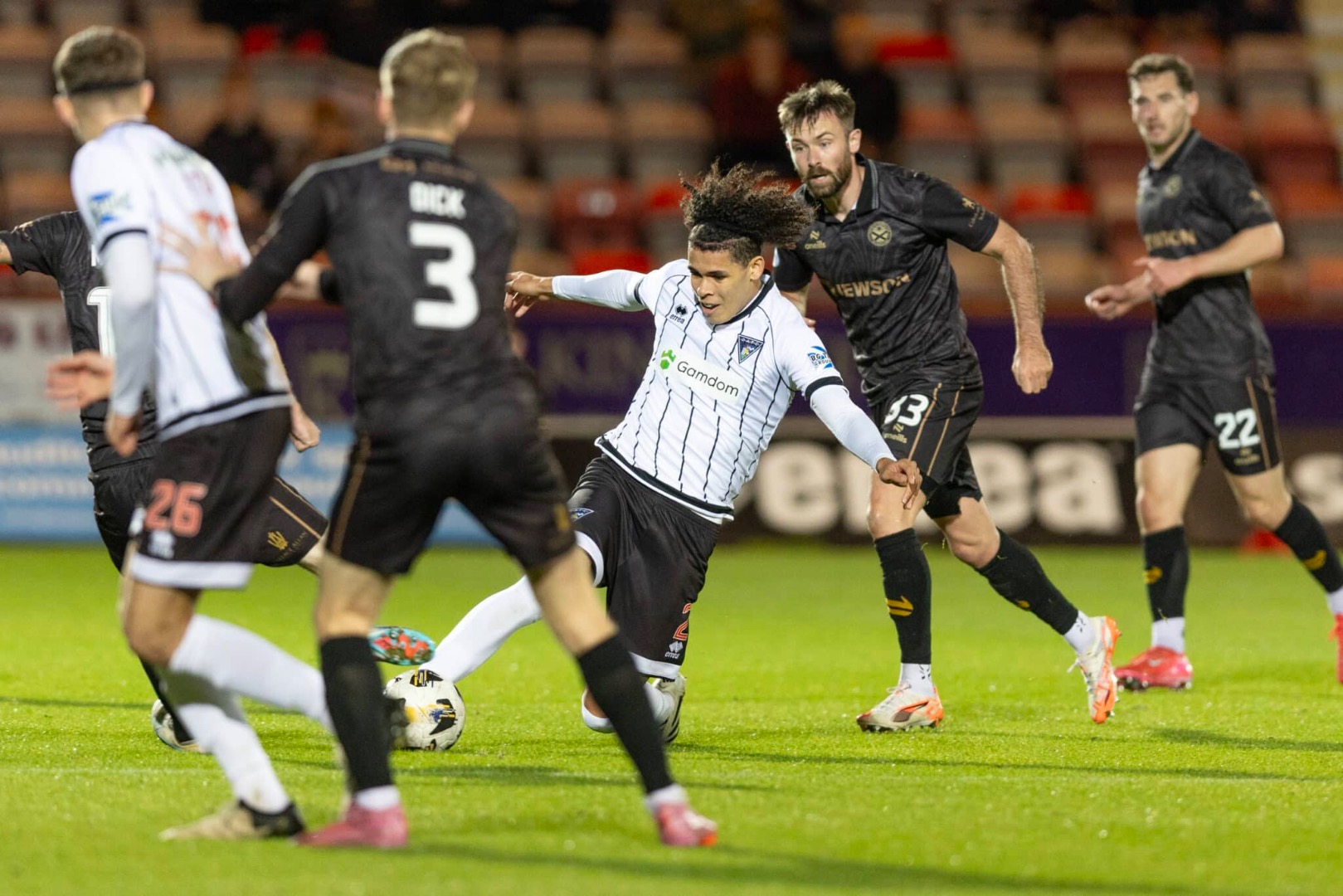 Tod sprayed the ball out wide right in 29 minutes and after a twist and turn to evade his marker, Kearney sent another dangerous ball into the Ayr box but Ewan Otoo`s header fell wide left. Then it was an Otoo ball up the left that Tod played in for Cáceres that yielded a free kick just 27 yards out. A Tod took responsibility for it but blasted his effort over the crossbar. Jeremiah Chilokoa-Mullen was harshly yellow carded in 31 minutes for a 50/50 challenge on McKenzie. A card decision that would prove to be very important.