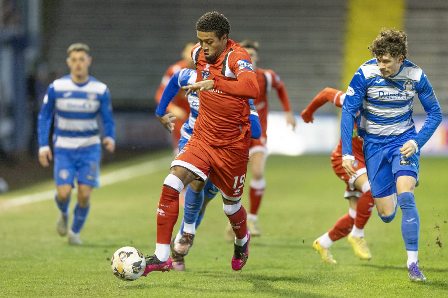 Shea Kearney was replaced by Andrew Tod for the second 45 with Matty Todd moved to right wing back. Four minutes in Olly Thomas was sent through by the substitute and having been forced wide by keeper Murray Johnson the Pars striker crashed the ball on to the right goalpost.
