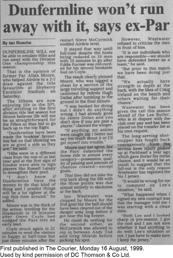 Saturday, 14th Aug 1999 The Courier Report 16/08/1999 (Airdrieonians(a))