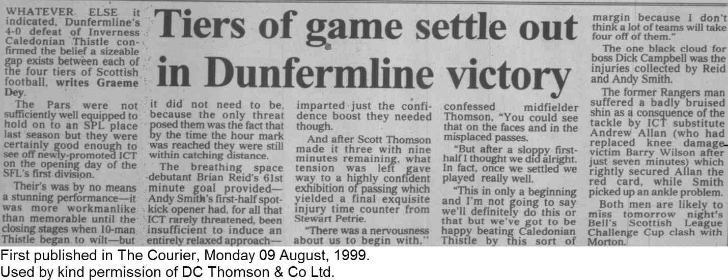 Saturday, 7th Aug 1999 The Courier Report 09/08/1999 (InvernessCaledonianThistle(h))