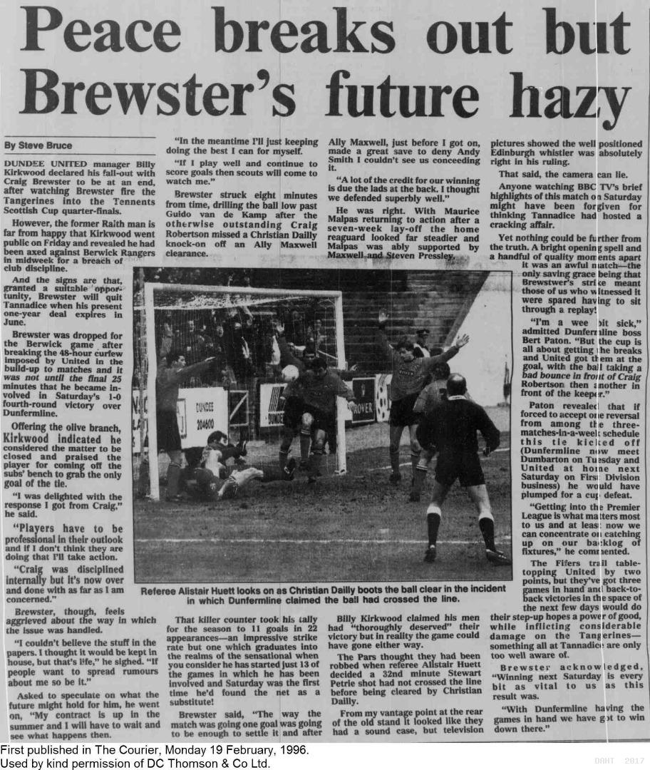Saturday, 17th Feb 1996 The Courier Report 19/02/1996 (DundeeUnited(a))