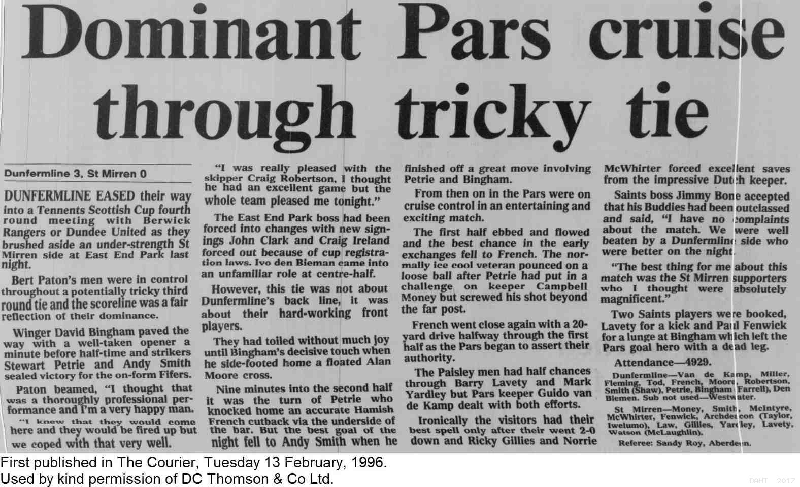 Monday, 12th Feb 1996 The Courier Report 13/02/1996 (StMirren(h))