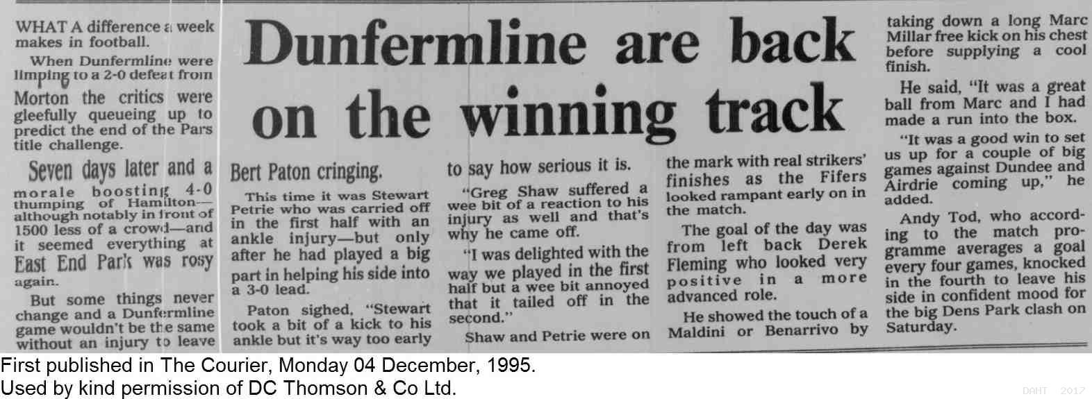 Saturday, 2nd Dec 1995 The Courier Report 04/12/1995 (HamiltonAcademical(h))
