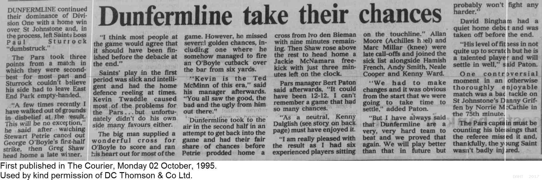 Saturday, 30th Sep 1995 The Courier Report 02/10/1995 (StJohnstone(h))