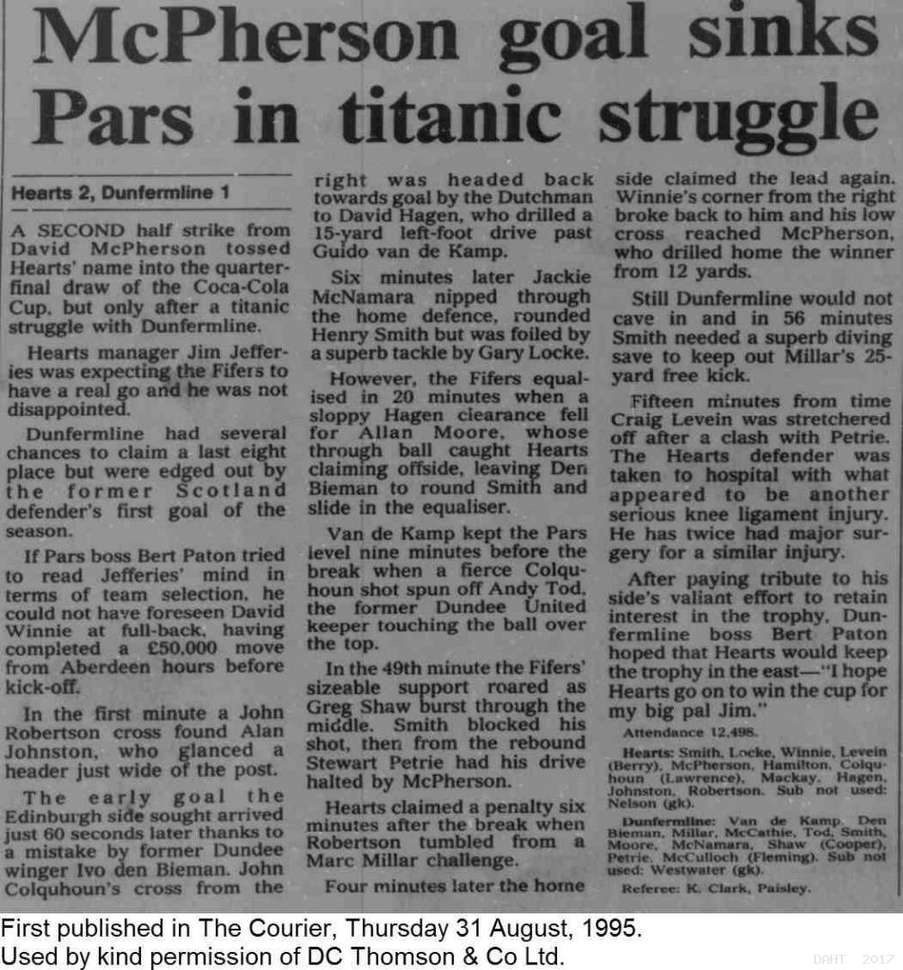 Wednesday, 30th Aug 1995 The Courier Report 31/08/1995 (HeartofMidlothian(a))