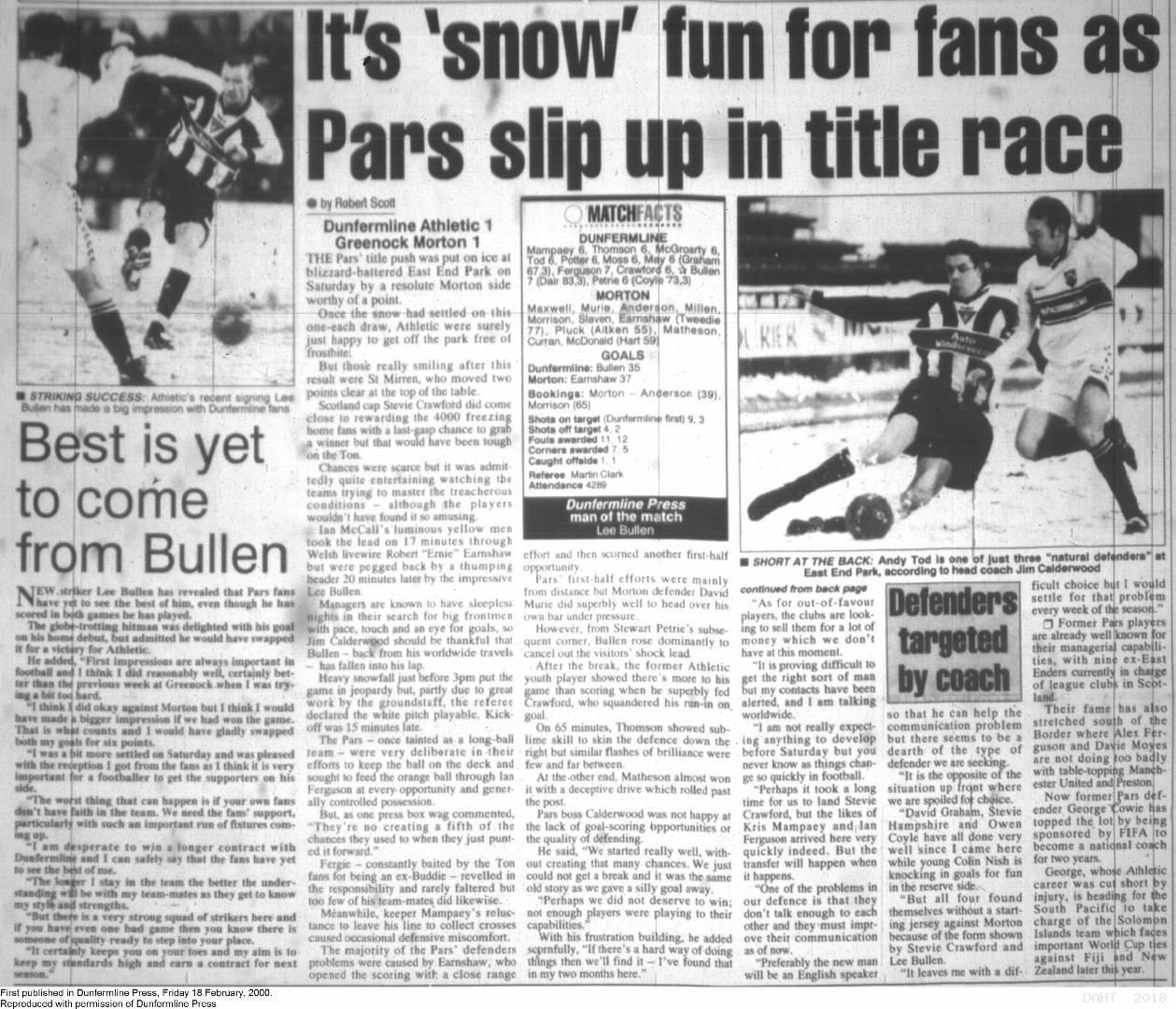 Saturday, 12th Feb 2000 Match Report 18/02/2000 (Morton(h))